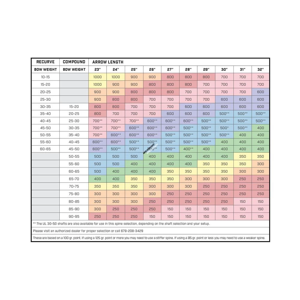 | SPINE | INNER DIAMETER | OUTER DIAMETER | GPI |